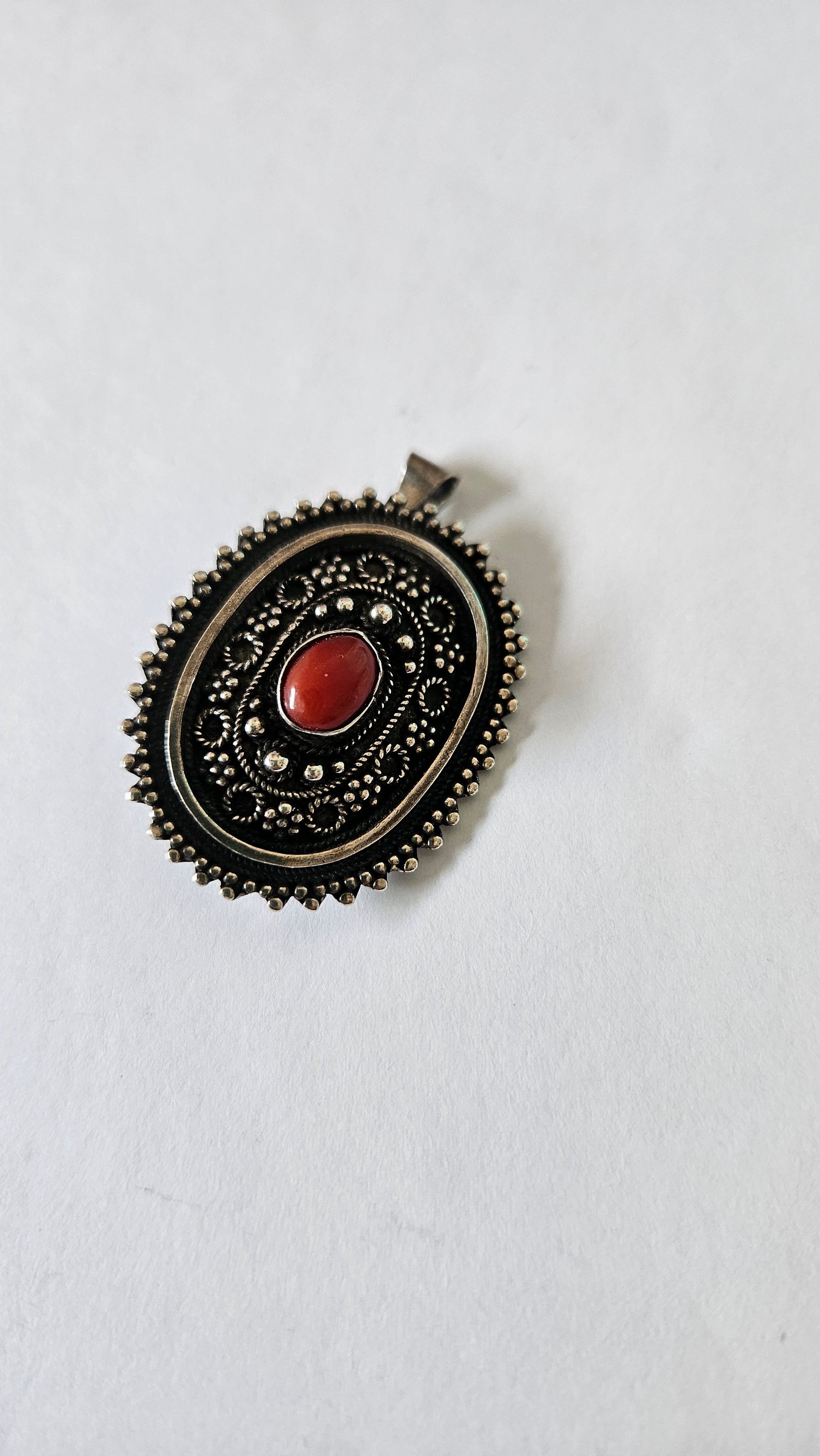 סיכת כסף עתיקה משובצת בקורל