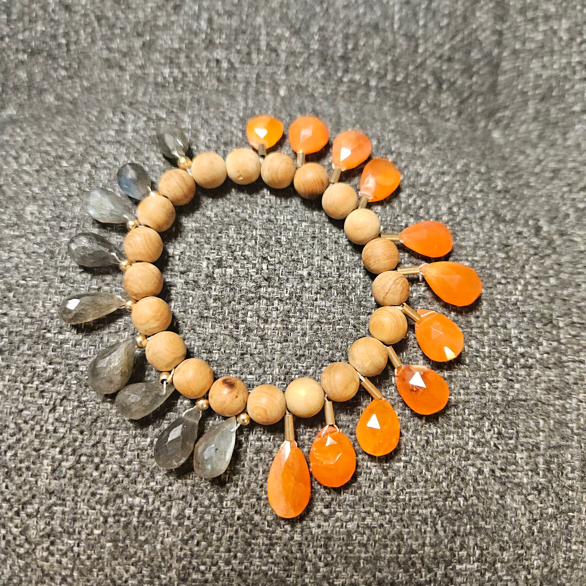 צמיד מחרוזי עץ בשילוב גולד פילד ואבני חן
