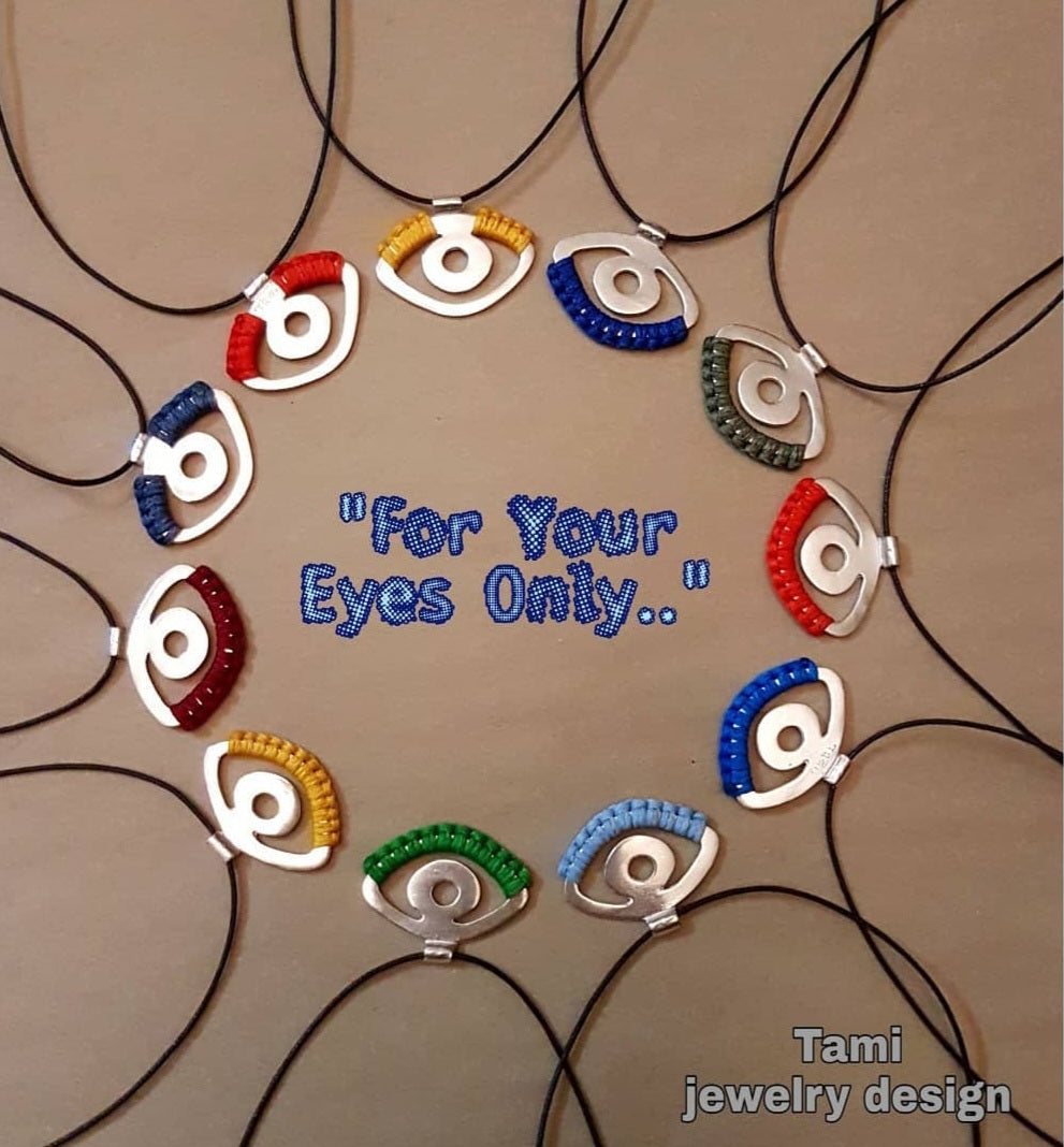שרשרת מחוט כותנה ועליו תליון מכסף בשילוב חוט צבעוני